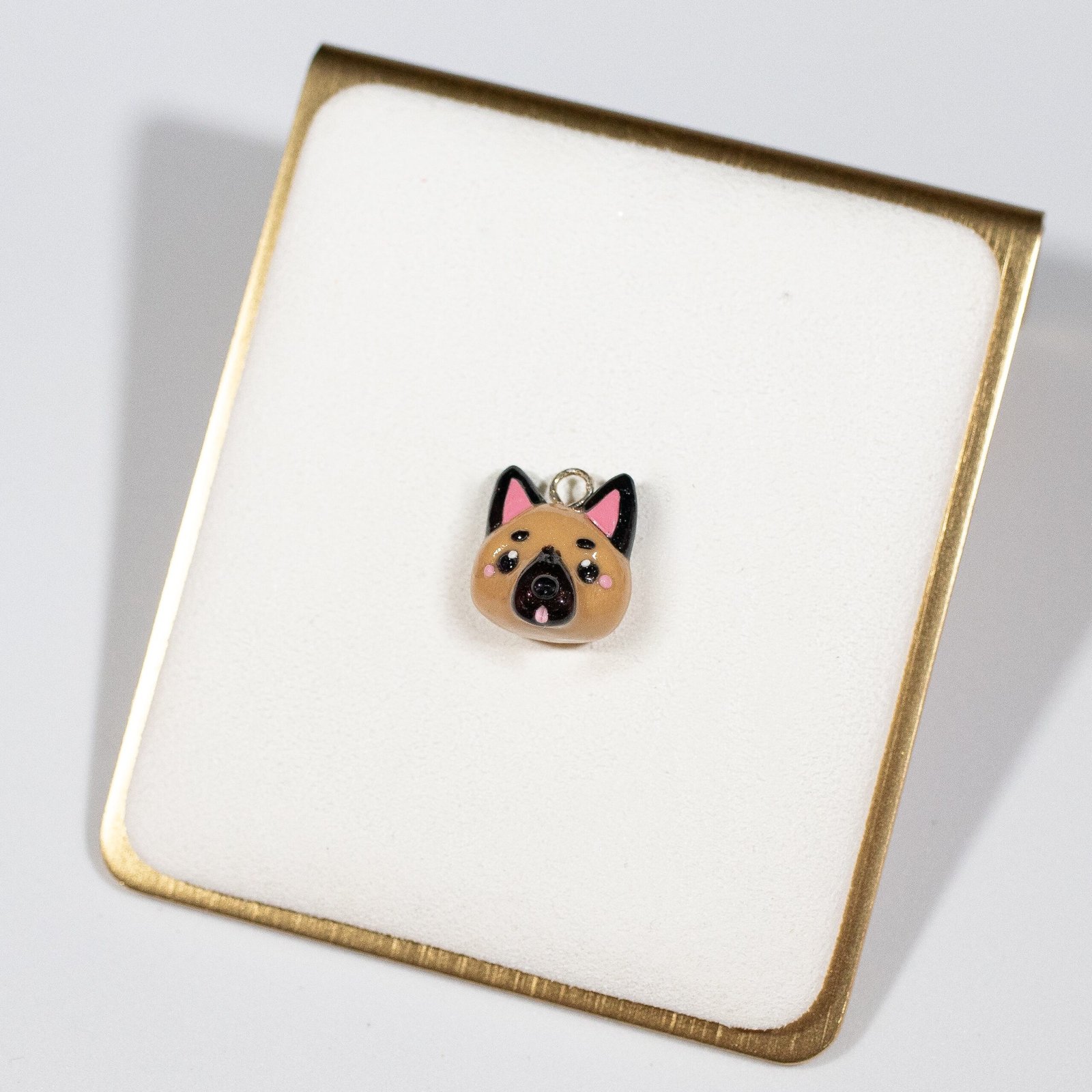 Cute and simple German shepherd clay charms! 🐾 These little charms have tiny details, like blushing cheeks and a tongue that sticks out. German shepherds are one of the most popular dog breeds in the world. Available in two shades: tan and brown.